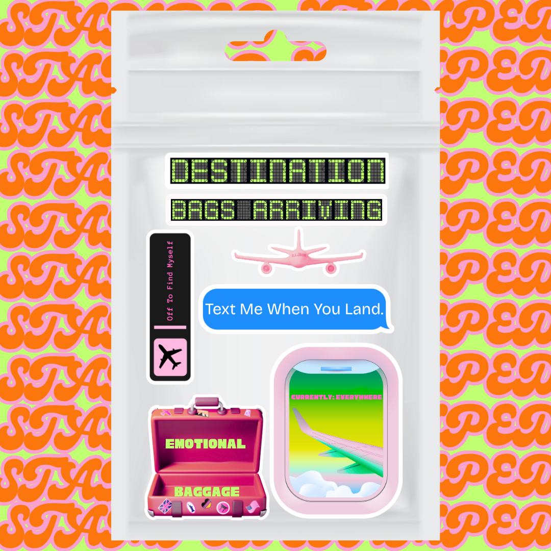 The Emotional Baggage Claim Pack is your personal arrival announcement, complete with a healthy dose of emotional baggage and zero regrets. Designed for carry-ons, checked hearts, and that soft-girl window seat moment.