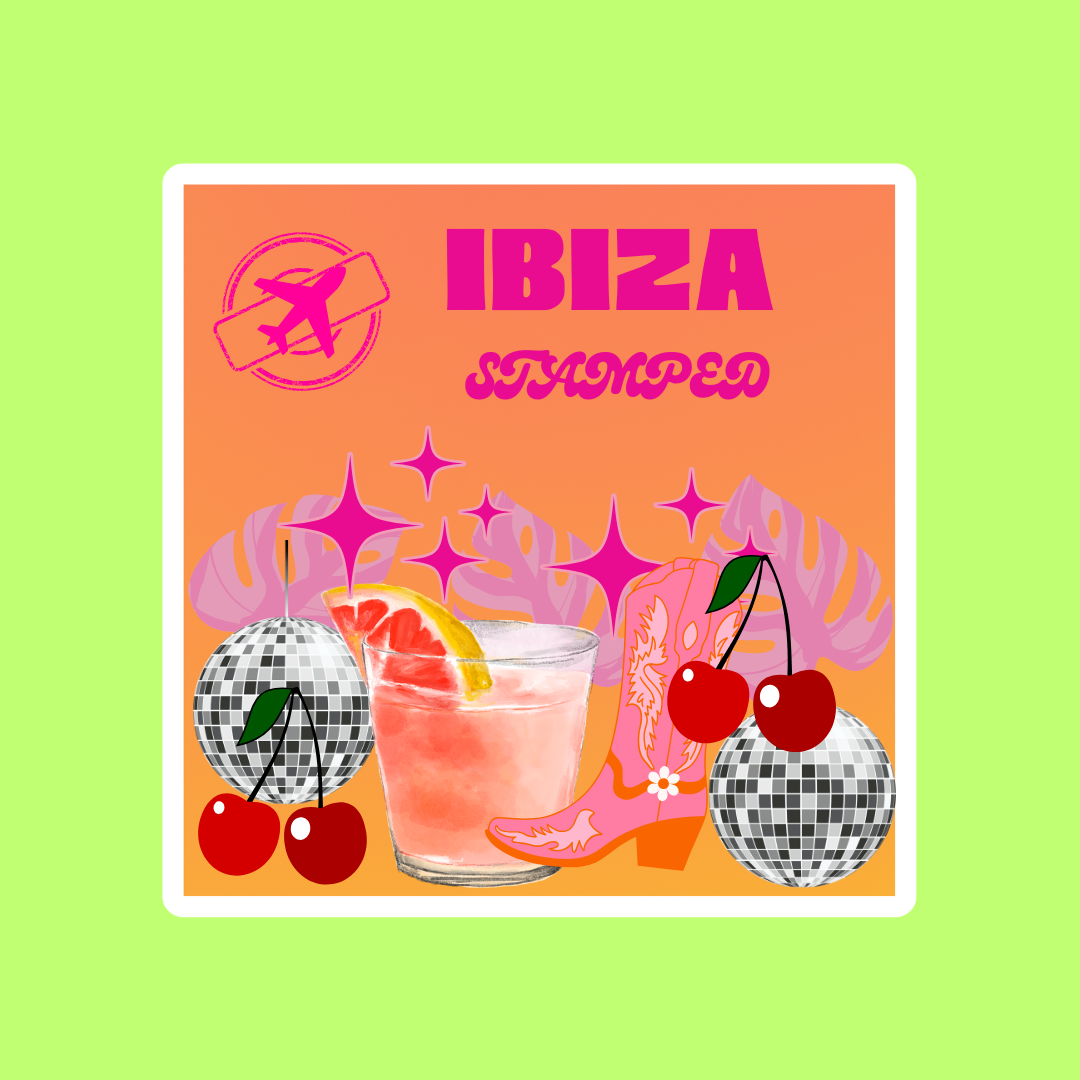 A premium, die-cut travel sticker inspired by the beat of Ibiza. From poolside afternoons to sunrise sets, this design marks every mile. Add it to your suitcase, journal or laptop and start stamping your journey.