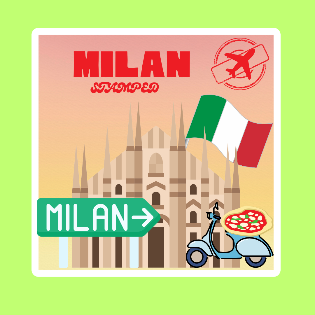 A premium, die-cut travel sticker inspired by the elegance of Milan. From boutique strolls to espresso breaks, this design marks every mile. Add it to your suitcase, journal or laptop and start stamping your journey.