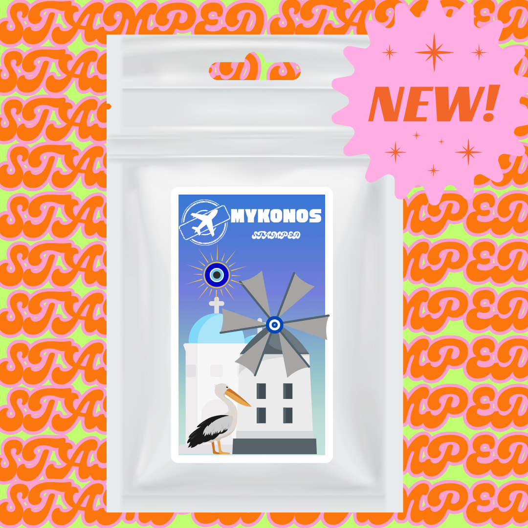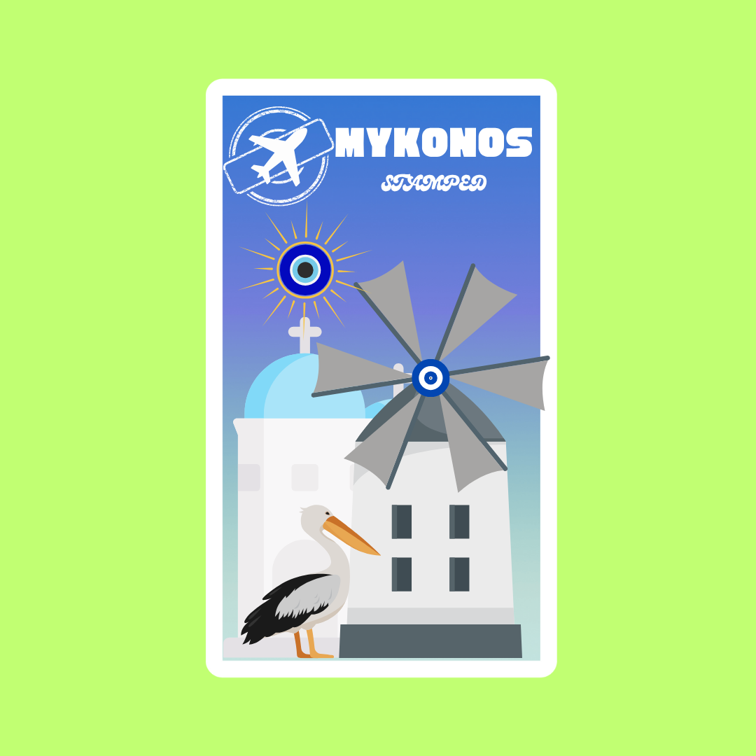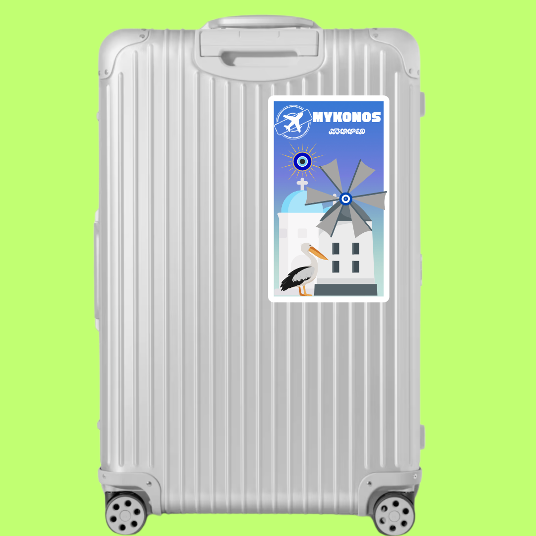 A premium, die-cut travel sticker inspired by the sun-drenched calm of Mykonos. From beach clubs to cliffside dinners, this design marks every mile. Add it to your suitcase, journal or laptop and start stamping your journey.