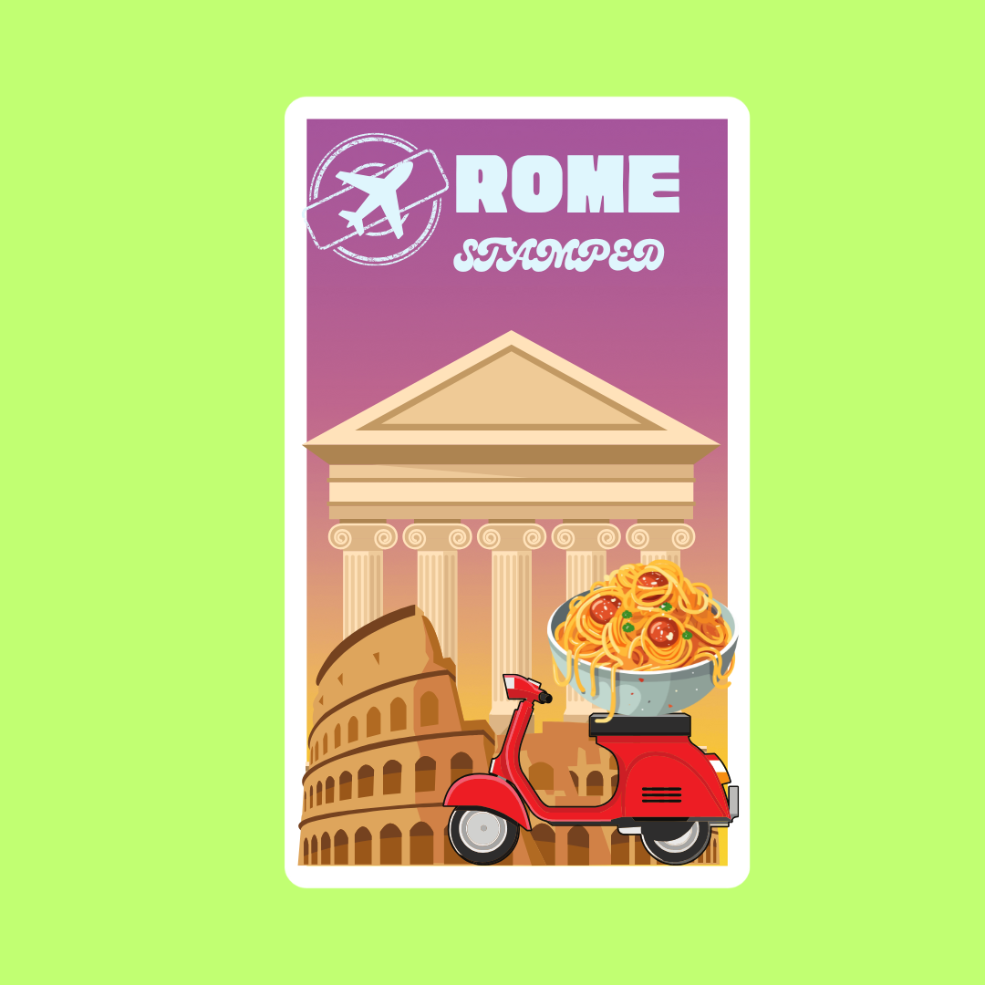 A premium, die-cut travel sticker inspired by the historic heart of Rome. From cobbled streets to late-night trattorias, this design marks every mile. Add it to your suitcase, journal or laptop and start stamping your journey.